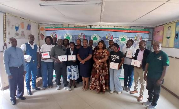 Zambian librarians with equipment donated by Airtel Zambia. Photo: Zambia Library Service.
