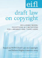 The EIFL Draft Law on Copyright is a practical guide to assist librarians, policy-makers and legislators when copyright laws are being updated. It contains provisions that support access to knowledge and the public interest mission of libraries, and it reflects legislative developments, current thinking on copyright policy, and new technologies.